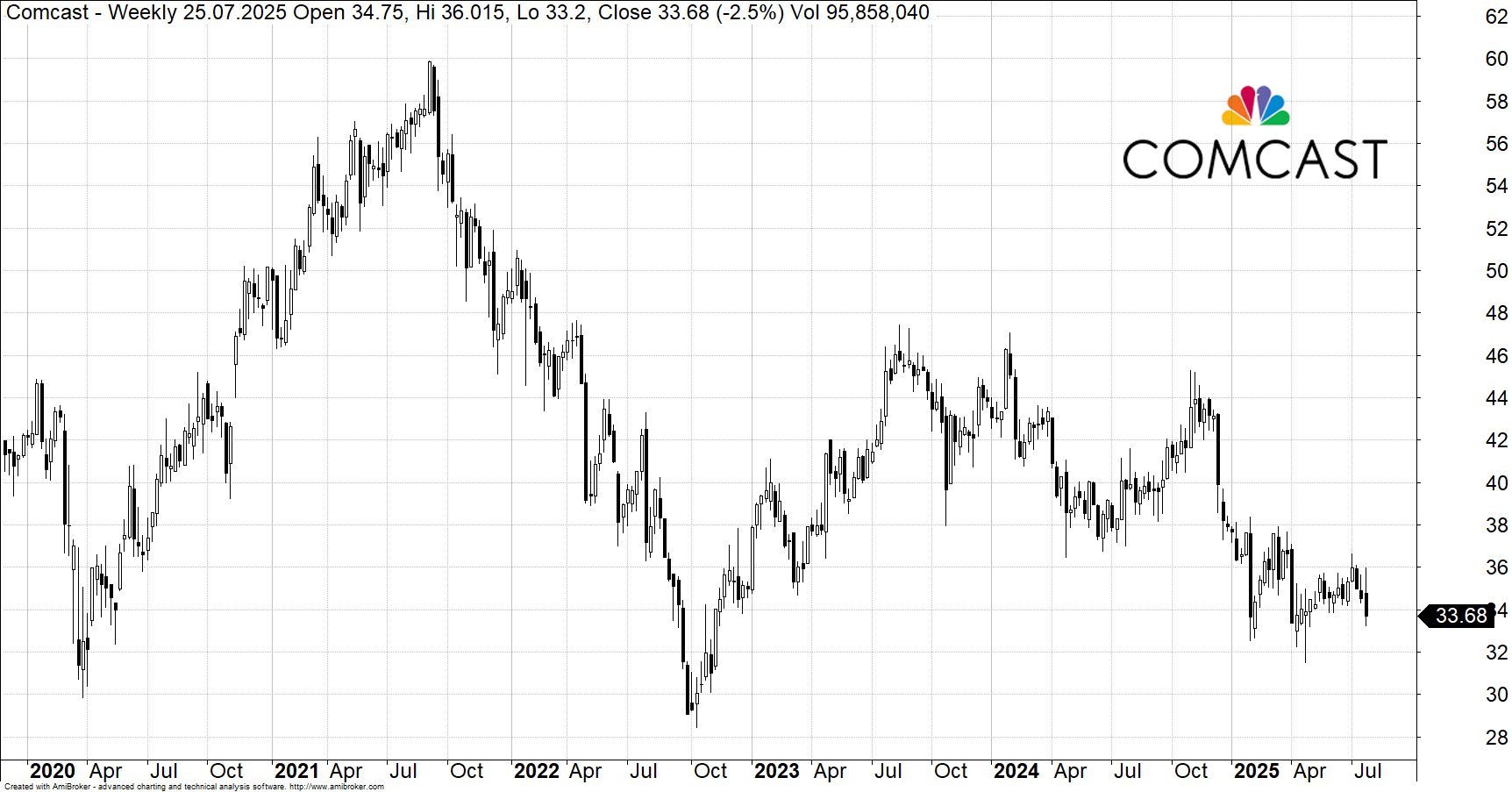 | Comcast | CMCSA | 3.8 | 8 | +6% | Media i infrastruktura |
