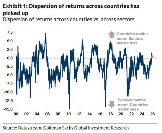 Przez długi czas europejskie akcje dało się opowiadać dość prosto: liczył się sektor, a kraj był tylko metką na indeksie. W 2025 r. ten schemat zaczął się rozsypywać. Z analiz Goldman Sachs wynika, że różnice stóp zwrotu między krajami w Europie stały się większe niż różnice między sektorami. To sygnał, że geografia znów ma znaczenie i to większe niż przez sporą część epoki euro.