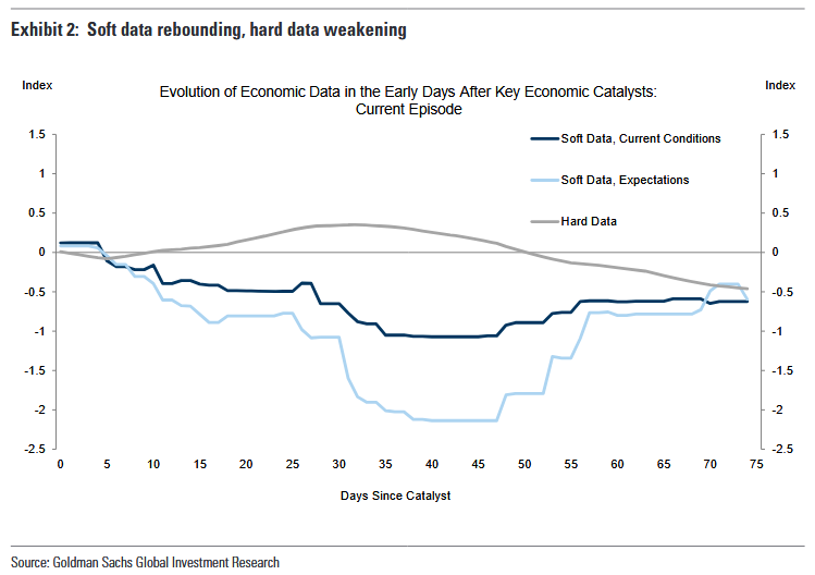 Raport zwraca uwagę, że sytuacja makroekonomiczna w USA jest mieszana. Dane o PKB i nastrojach inwestorów poprawiły się względem fatalnego kwietnia, ale twarde wskaźniki, takie jak sprzedaż detaliczna czy rynek pracy, sygnalizują spowolnienie. Goldman Sachs prognozuje, że stopa bezrobocia w USA może stopniowo rosnąć.
