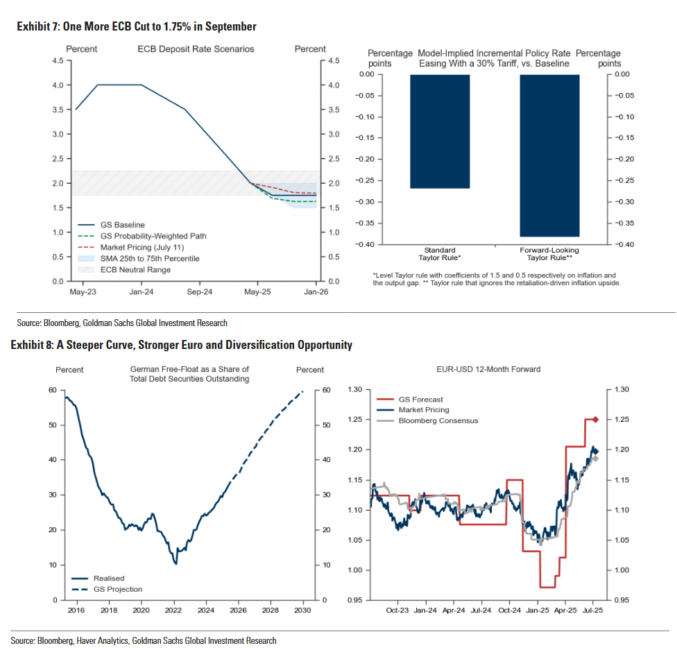 W tym kontekście Europejski Bank Centralny prawdopodobnie pozostawi stopy bez zmian w lipcu, ale Goldman Sachs prognozuje jeszcze jedną, ostatnią obniżkę – do 1,75% we wrześniu. Jeśli napięcia handlowe przybiorą na sile, może to otworzyć drogę do dalszego luzowania polityki monetarnej.