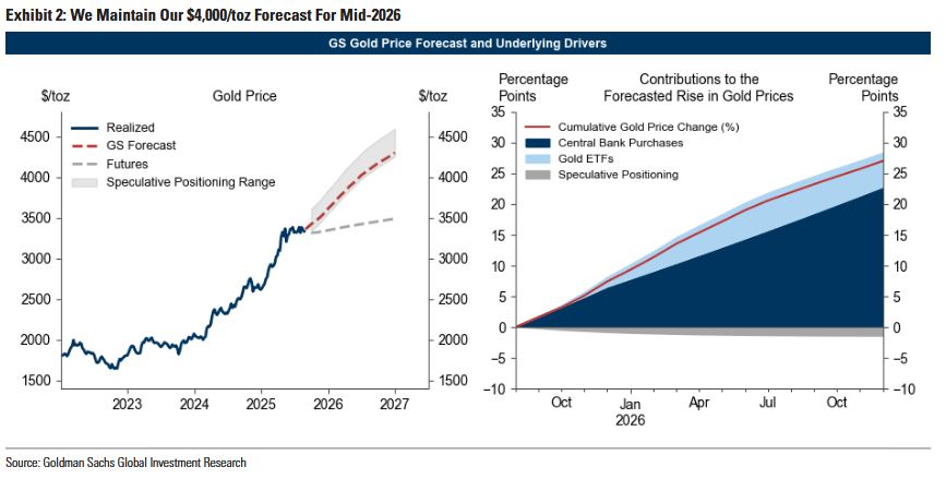 Złoto wchodzi w okres sezonowego spowolnienia, ale – jak przekonują analitycy Goldman Sachs – jego fundamenty są dziś trwalsze niż jeszcze kilka miesięcy temu. Bank podtrzymuje prognozę, że w połowie 2026 roku uncja kruszcu osiągnie poziom 4 000 USD, a głównymi motorami wzrostu pozostaną banki centralne oraz napływ środków do funduszy ETF.