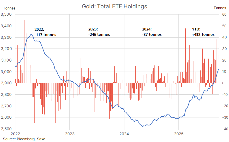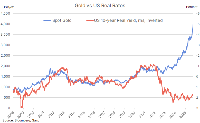 „Przekroczenie poziomu 4 000 USD nie jest jedynie wynikiem oczekiwań dotyczących stóp procentowych lub osłabienia dolara. Odzwierciedla ono raczej głębszą zmianę w psychologii inwestorów i globalnych przepływach kapitałowych” - podkreśla Ole Hansen, dyrektor ds. strategii rynku surowców w Saxo Banku. W jego ocenie rośnie znaczenie aktywów materialnych pozbawionych ryzyka kontrahenta, a rynek coraz wyraźniej kwestionuje dotychczasowe filary zaufania. „Wzrost ceny złota powyżej 4 000 USD może zatem symbolizować coś więcej niż tylko kolejną cykliczną hossę. Może on oznaczać zbiorową rewizję pojęć zaufania, suwerenności i tego, co naprawdę oznacza 'bezpieczeństwo'. W tym sensie rynek nie tylko kwestionuje stary porządek - być może już wycenia nowy”.