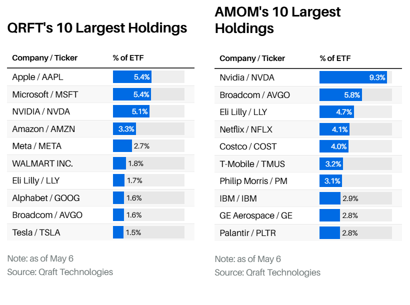 W portfelu QRFT znajdziemy wszystkie „Wspaniałe Siódemki” – Apple, Microsoft, Meta, Nvidia, Amazon, Alphabet i Teslę – ale również takich graczy jak Eli Lilly, Broadcom czy Walmart. Lekka nadwaga technologii, finansów i ochrony zdrowia zdaje się być strategią skrojoną na obecne czasy.