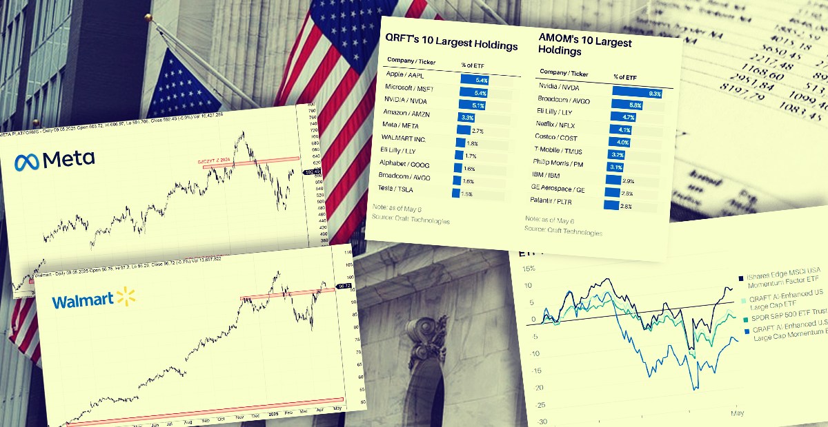 Fundusze Qraft balansują swoje portfele co miesiąc, dokładnie drugiego dnia sesyjnego. I maj przyniósł kilka zaskoczeń. Momentumowy fundusz AMOM pozbył się całkowicie akcji Meta, które jeszcze miesiąc wcześniej stanowiły 6% portfela. Powód? W kwietniu akcje spółki praktycznie stały w miejscu – a to dla algorytmu sygnał, że dalsze wzrosty nie są prawdopodobne.