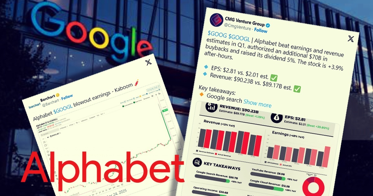 Alphabet zanotował w pierwszym kwartale 2,81 dolara zysku na akcję przy przychodach sięgających 90,2 miliarda dolarów. To znacznie więcej niż zakładał konsensus rynkowy (FactSet: 2,01 dol. EPS i 89,2 mld dol. przychodów). Wraz z publikacją wyników ogłoszono nowy program skupu akcji własnych o wartości 70 miliardów dolarów oraz 5-procentową podwyżkę dywidendy. Dla wielu inwestorów to był sygnał, że firma czuje się na tyle pewnie, by dzielić się zyskami.