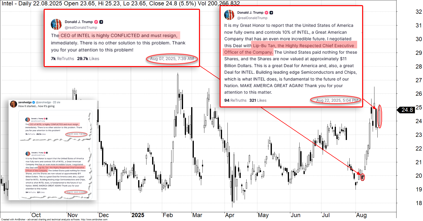 Pat Gelsinger, dotychczasowy prezes i inżynier z długim stażem, miał odwrócić losy firmy, jednak jego ambitny plan modernizacji fabryk zakończył się niepowodzeniem. Zrezygnował w grudniu. Stery przejął Lip-Bu Tan, który od razu znalazł się pod presją polityki. Amerykańska prasa przypomina sytuację z 7 sierpnia: Donald Trump w mediach społecznościowych zażądał jego dymisji, a notowania spółki spadły o ponad 3%. Kilka dni później, po wizycie Tana w Białym Domu i łagodniejszym tonie prezydenta, akcje odbiły o podobną wartość.