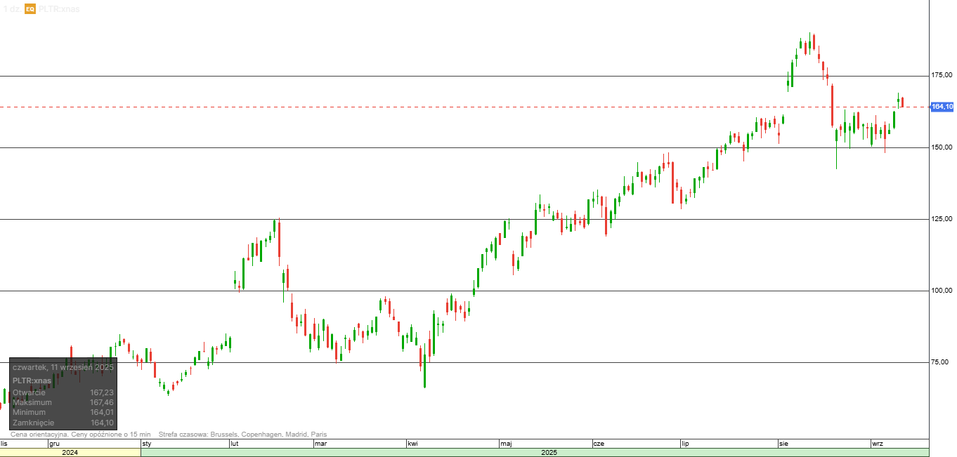 Palantir to software dla obronności i wywiadu - dziś często wskazywana jako gwiazda amerykańskiego parkietu, bo łączy szybki wzrost z kontraktami rządowymi. W Q2 2025 spółka wypuściła Gotham 9.0 z zaawansowanymi funkcjami geospatial AI do analizy zdjęć satelitarnych w czasie rzeczywistym i rozszerzyła współpracę z Pentagonem o grant na moduł wykrywania dronów EnemyEye.