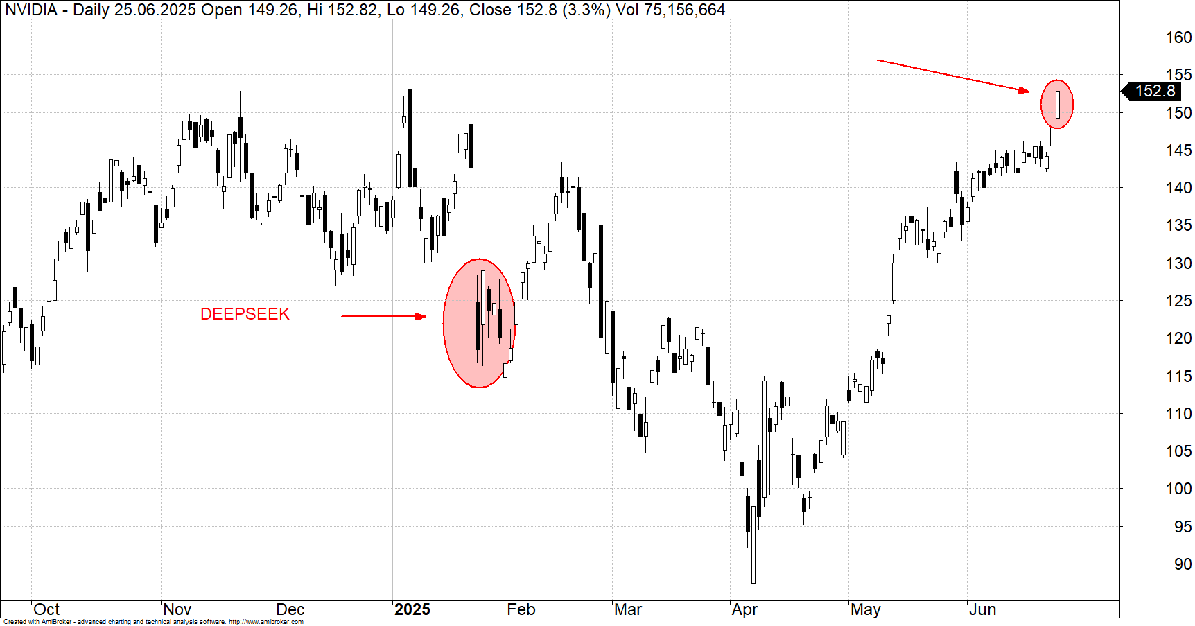 Nvidia, spółka-symbol obecnej rewolucji sztucznej inteligencji, otworzyła środową sesję na Wall Street od nowego rekordu. Kurs akcji przekroczył styczniowe ATH i wzrósł o ponad 2%, osiągając poziom 151,15 dol. To może być jedynie wierzchołek góry lodowej – o ile nie przeszkodzą temu zewnętrzne czynniki.