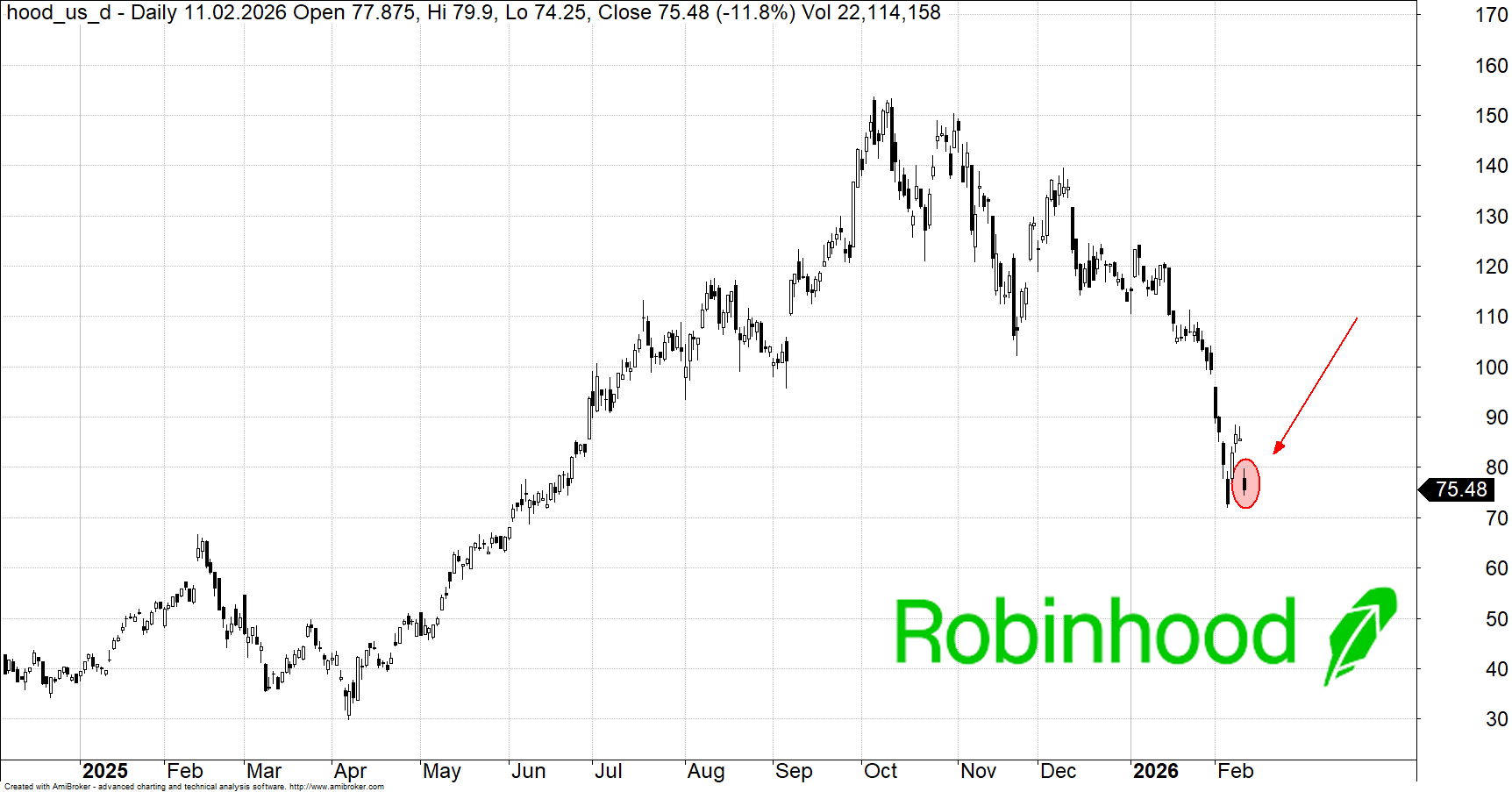 Na obraz nakłada się jeszcze jedno. Wyniki Robinhooda przyszły po ciężkim dniu dla spółek z segmentu wealth management i brokerów, których notowania dostały rykoszetem po obawach o zagrożenia ze strony sztucznej inteligencji. Robinhood zakończył wtorkową sesję “tylko” 1,1% na minusie, ale w branży skala wyprzedaży bywała większa - Charles Schwab spadł o 7,4%.