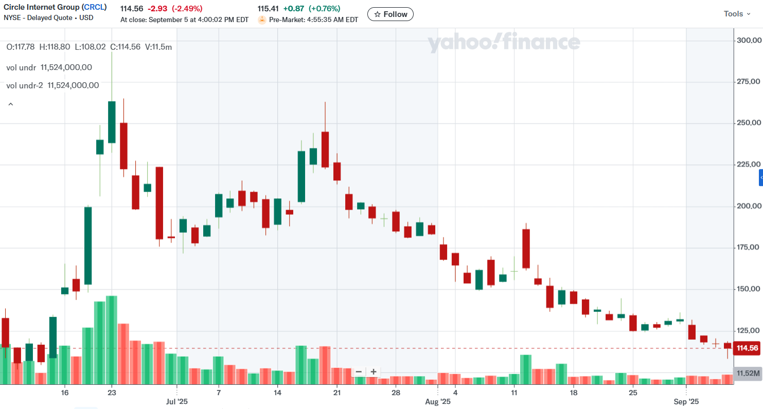 Historia kilku najnowszych debiutów przypomina jednak, że fajerwerki z pierwszego dnia szybko gasną. Circle dziś kosztuje około 115 USD, ponad 60% poniżej szczytu tuż poniżej 300 USD. Figma, która po pierwszym raporcie wynikowym od debiutu spadła jednego dnia o blisko 20%, krąży wokół 55 USD - również ponad 60% poniżej rekordu niecałych 143 USD. Bullish utrzymuje się przy 52 USD, ponad 55% pod maksymalnym poziomem 118 USD.