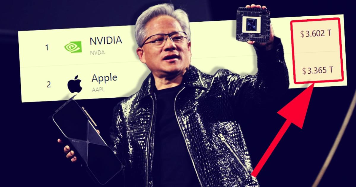 Nvidia odzyskała pozycję lidera jako najcenniejsza spółka świata, osiągając kapitalizację rynkową na poziomie 3,60 biliona dolarów. Tym samym wyprzedziła Apple, którego wartość rynkowa wynosi obecnie 3,34 bln USD.