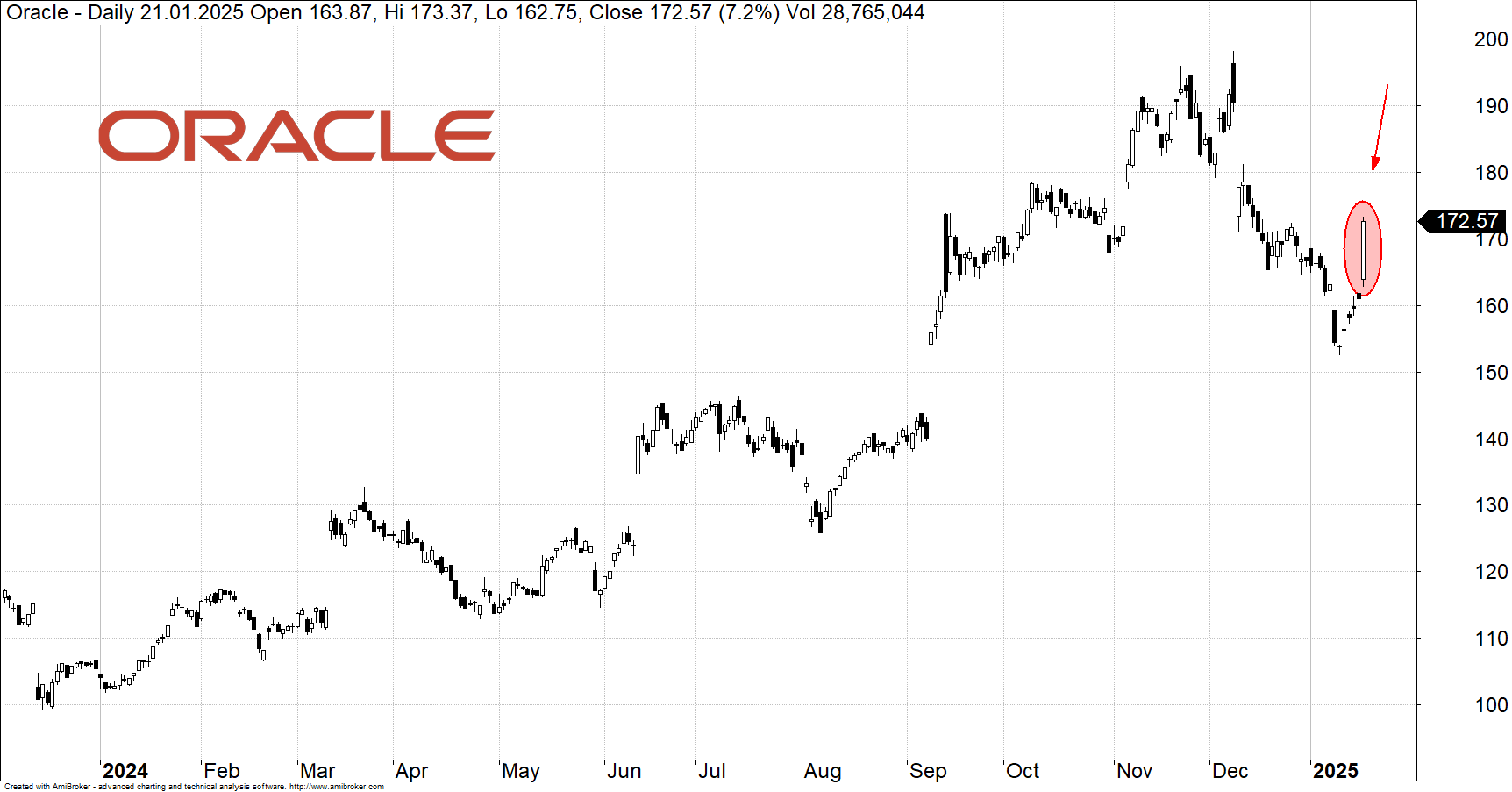 We wtorek akcje Oracle znacząco wzrosły po ogłoszeniu inicjatywy, zamykając się z wynikiem +7%. Oficjalna prezentacja projektu w Białym Domu, z udziałem Sama Altmana z OpenAI, Larry'ego Ellisona z Oracle oraz Masayoshiego Sona z SoftBank Group, nastąpiła po zakończeniu sesji giełdowej.