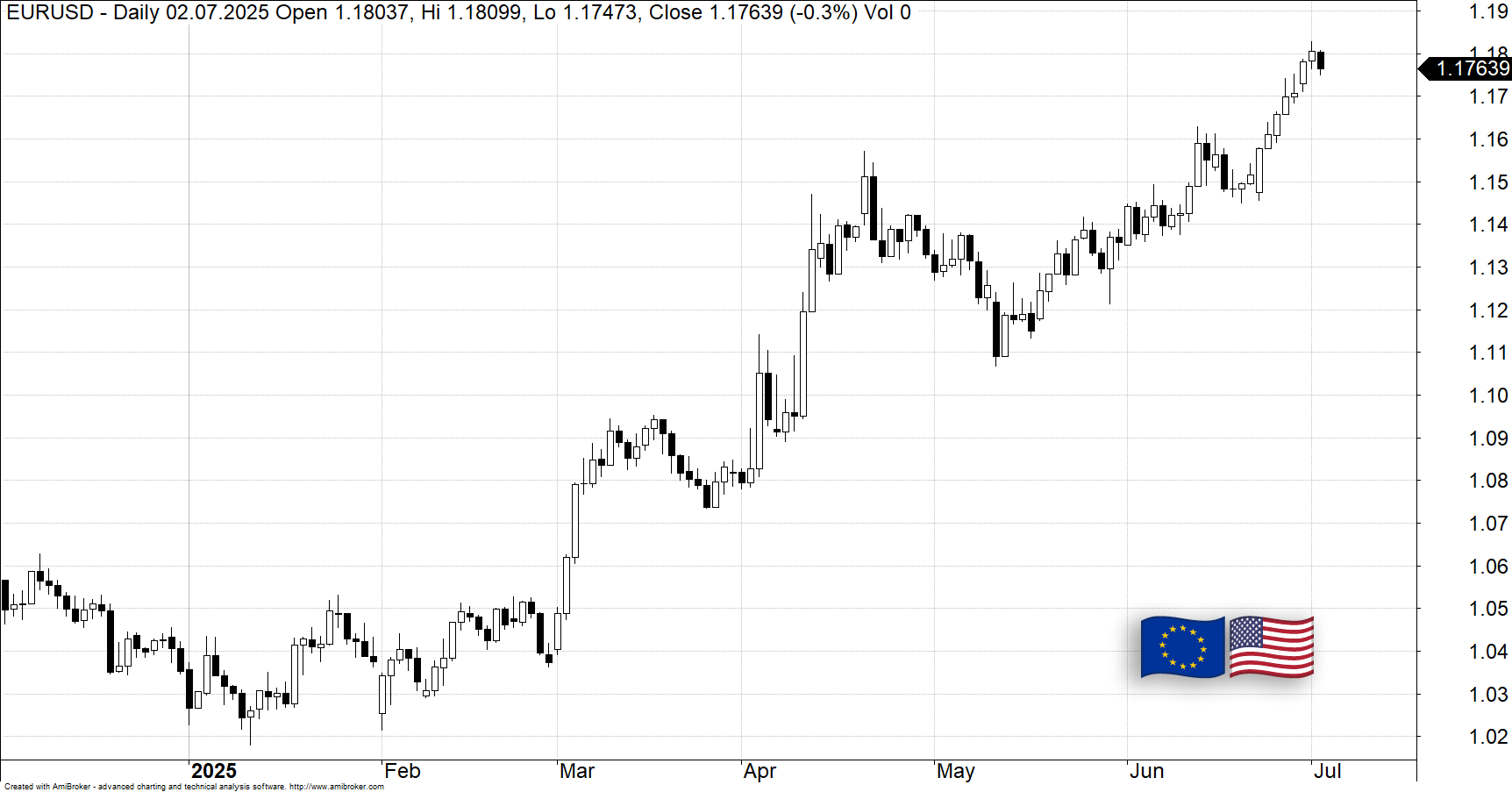 Na tej sytuacji korzysta euro, które w ostatnich dniach osiągnęło najwyższy poziom względem dolara od września 2021 roku, sięgając wartości 1,1807 dolara. Choć później kurs nieco się cofnął do poziomu 1,1778 dolara, trend jest wyraźny. Europejski Bank Centralny, póki co, nie ma nic przeciwko umocnieniu wspólnej waluty, choć prawdopodobnie zmieni ton, jeśli kurs euro zbliży się do poziomu 1,20 dolara — wtedy zacznie to realnie szkodzić konkurencyjności europejskich eksporterów i istotnie wpłynie na dalsze prognozy dla euro.