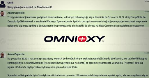 Czaty 09.12.2020 0 „Naszym planem jest zwiększanie wartości sprzedaży o 100% co roku przez kilka najbliższych lat” - relacja z czatu z prezesem Omnioxy