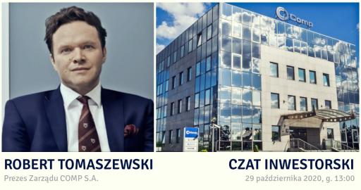 Czaty 29.10.2020 0 Aktualna sytuacja oraz strategia rozwoju COMP – czat z prezesem zarządu, Robertem Tomaszewskim