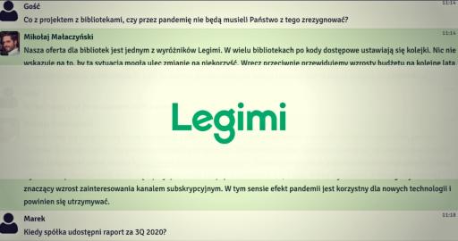 Czaty 21.10.2020 0 Emisja obligacji Legimi oraz plany rozwoju – czat z prezesem zarządu, Mikołajem Małaczyńskim