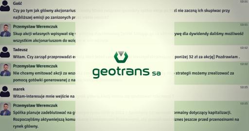 Czaty 05.10.2020 0 Nowa strategia spółki Geotrans oraz plany rozwoju – czat z prezesem zarządu, Przemysławem Weremczukiem