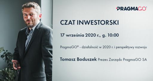 Czaty 17.09.2020 0 Działalność PragmaGO® w 2020 r. oraz perspektywy rozwoju – czat z prezesem zarządu, Tomaszem Boduszkiem