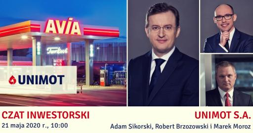 Czaty 19.05.2020 0 Wyniki finansowe Grupy UNIMOT za I kwartał 2020 roku oraz perspektywy rozwoju – czat z zarządem spółki