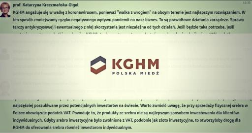 Czaty 19.05.2020 0 Wyniki finansowe KGHM za I kwartał 2020 roku – czat z wiceprezes zarządu ds. finansowych, prof. Katarzyną Kreczmańską-Gigol