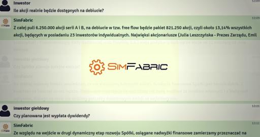 Czaty 06.04.2020 0 „Zakładamy, że będzie realne utrzymanie dynamiki 100% wzrostu przychodów rok do roku” - relacja z czatu z zarządem SimFabric