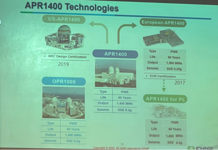 Zdjęcie prezentacji KHNP z konferencji Klubu Energetycznego „Energetyka Jądrowa – Rozwiązania dla Polski”, 22.09.2022.