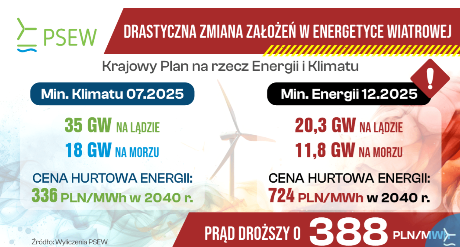 Polskie Stowarzyszenie Energetyki Wiatrowej (PSEW) bije na alarm w związku z nową propozycją Krajowego Planu w dziedzinie Energii i Klimatu (KPEiK). Zdaniem branży, dokument przygotowany przez stronę rządową bezpodstawnie i drastycznie ogranicza rozwój farm wiatrowych, nie popierając tej decyzji żadnymi analizami merytorycznymi. Konsekwencje tych zmian mogą być dotkliwe dla portfeli Polaków i kondycji całej gospodarki.
