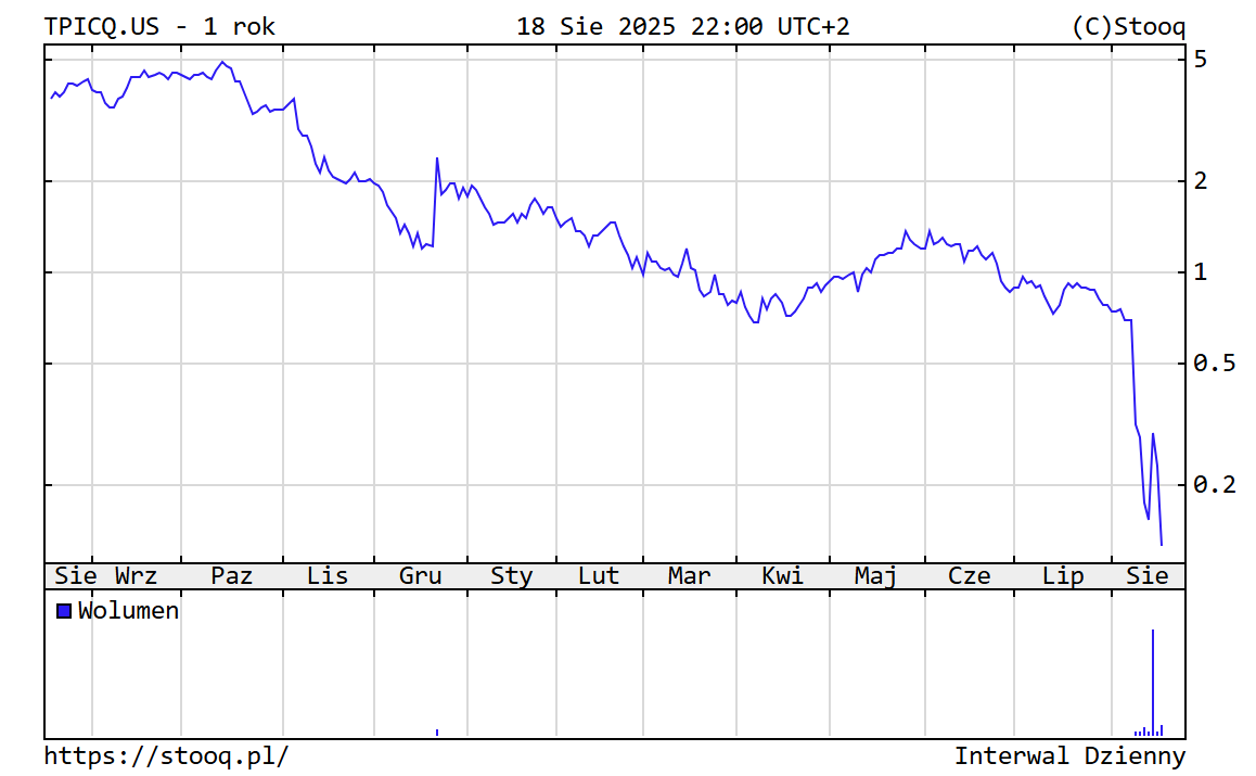 TPI była przez lata kluczowym ogniwem globalnego łańcucha dostaw dla energetyki wiatrowej. Posiadała fabryki w USA, Meksyku, Turcji i Indiach oraz centra inżynieryjne w Niemczech, Francji, Danii i Hiszpanii. W 2024 r. spółka miała 27 proc. udziału w rynku łopat (poza Chinami). A jednak kurs z okolic 70 USD w 2021 r. spadł do zaledwie 12 centów.