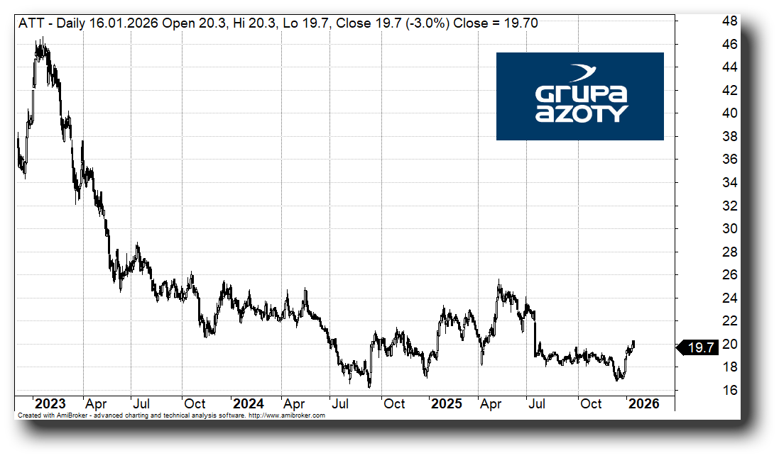 Poza tym spółka poinformowała w ubiegłym tygodniu o dużych odpisach, co nazwano w komunikacie „porządkowaniem finansów”, ale w istocie obrazuje duże kłopoty całej grupy kapitałowej. Grupa Azoty oraz Grupa Azoty Police utworzyły pełne odpisy na pożyczki udzielone spółce GA Polyolefins w kwotach odpowiednio 586 mln zł oraz 661 mln zł, co choć drastycznie obniża wynik netto obu podmiotów (odpowiednio o 589,8 mln zł i 663 mln zł), pozostaje bez bezpośredniego wpływu na ich bieżący wskaźnik EBITDA. Wyjątek stanowi dodatkowy, częściowy odpis na należności handlowe w wysokości 119 mln zł utworzony przez Grupę Azoty Police, który bezpośrednio obciąży wynik operacyjny spółki.
