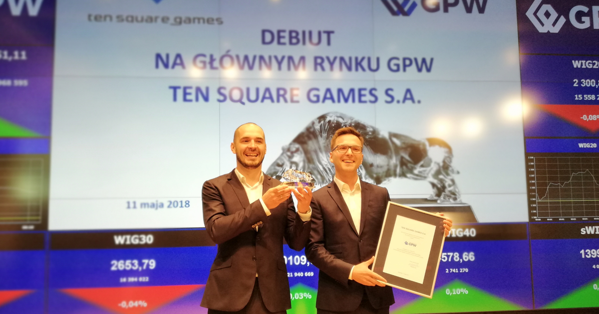 Akcje Ten Square Games zadebiutowały na głównym parkiecie GPW w Warszawie. Kurs akcji na debiucie wyniósł 52,2 zł, co oznacza wzrost o 13,5 % względem ceny z oferty.