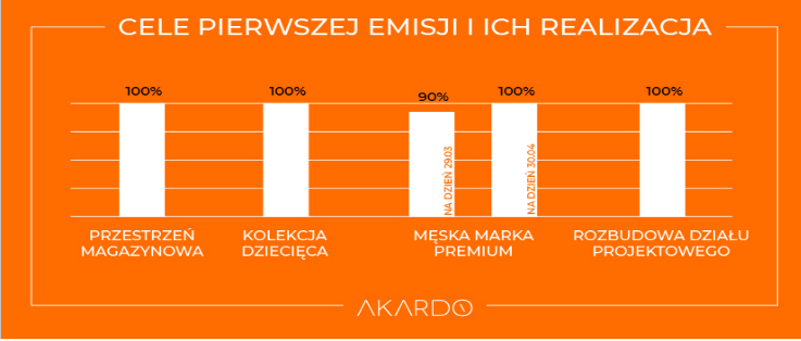 Ekspansja zagraniczna wraz ze zmianą platformy e-commerce dla sklepu internetowego wraz z dostosowaniem modelu biznesowego do sprzedaży eksportowej – dodatkowi pracownicy, tłumaczenia, sposoby płatności, logistyka, wdrożenie wersji sklepu dla domen akardo.cz i akardo.sk. Ponadto działania marketingowe – budowa od podstaw wewnętrznego działu marketingu, który będzie pracował nad zwiększaniem świadomości oraz sprzedaży obu marek. Poszerzenie asortymentu – wzrost liczby modeli oraz nawiązanie współpracy z kolejnymi zakładami szewskimi. Zwiększenie środków obrotowych i dalsze zatowarowanie magazynu.