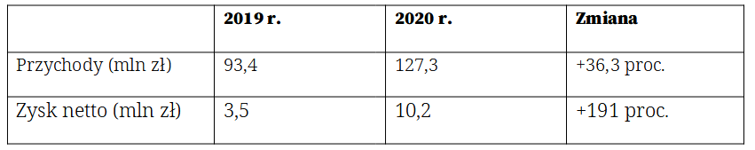 ML System wypracował w 2020 r. 127,3 mln zł przychodów ze sprzedaży oraz 10,2 mln zł zysku netto. Oznacza to wzrost rok do roku odpowiednio o 36,3 proc. oraz 191 proc.