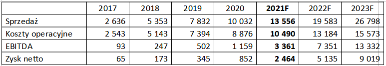 Skrócony rachunek Zysków i Strat oraz prognozy finansowe Woodpecker.co S.A. (w tys. PLN)
