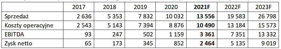 Skrócony rachunek Zysków i Strat oraz prognozy finansowe Woodpecker.co S.A. (w tys. PLN)