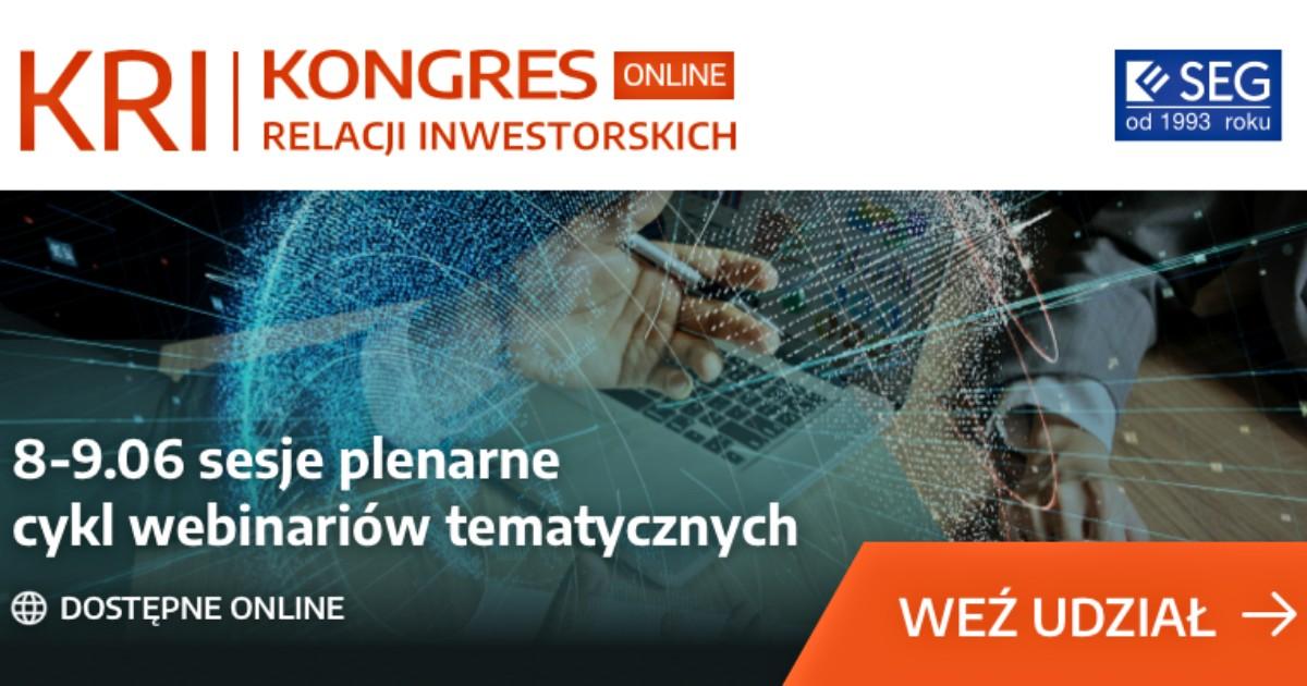 8 czerwca br. startuje XII Kongres Relacji Inwestorskich Spółek Giełdowych SEG, który w tym roku, odbędzie się w wersji online. e-KRI składa się z 2 dni debat z zaproszonymi ekspertami (w dniach 08- 09.06.2021), oraz cyklu 5 webinariów (10–24.06.2021). Spotkania skoncentrowane będą na zagadnieniach istotnych z punktu widzenia działów relacji Inwestorskich spółek giełdowych.