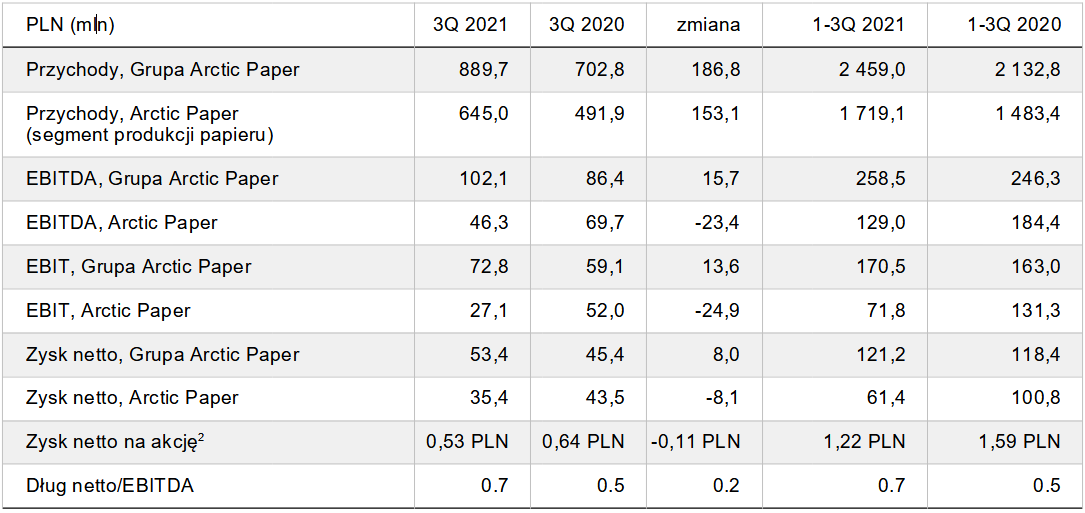 ARCTIC PAPER podsumowuje III kwartał 2021 r.