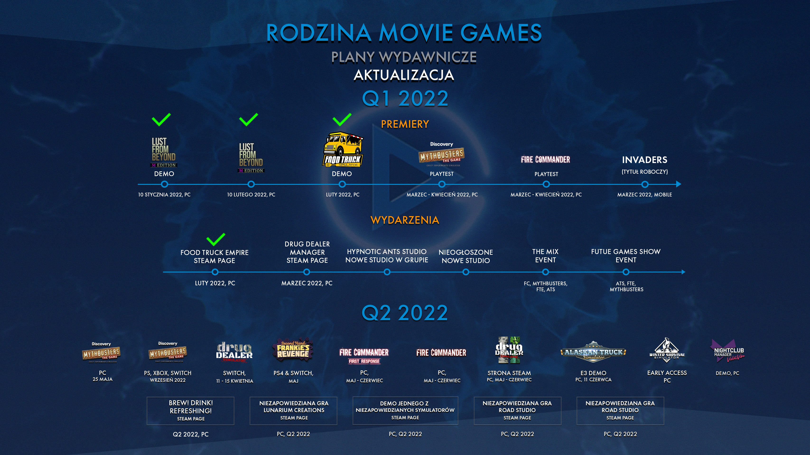 Movie Games S.A., notowany na NewConnect globalny wydawca gier komputerowych i konsolowych, przedstawił podsumowanie działań i aktualizację planów wydawniczych na rok 2022. Uściślone zostały terminy premiery wybranych tytułów. Zaplanowano otwarte playtesty i dema, zapowiedziano gry i porty konsolowe, a także zapewniono udział określonych gier w imprezach branżowych. Ogłoszono także pozyskanie nowego studia.