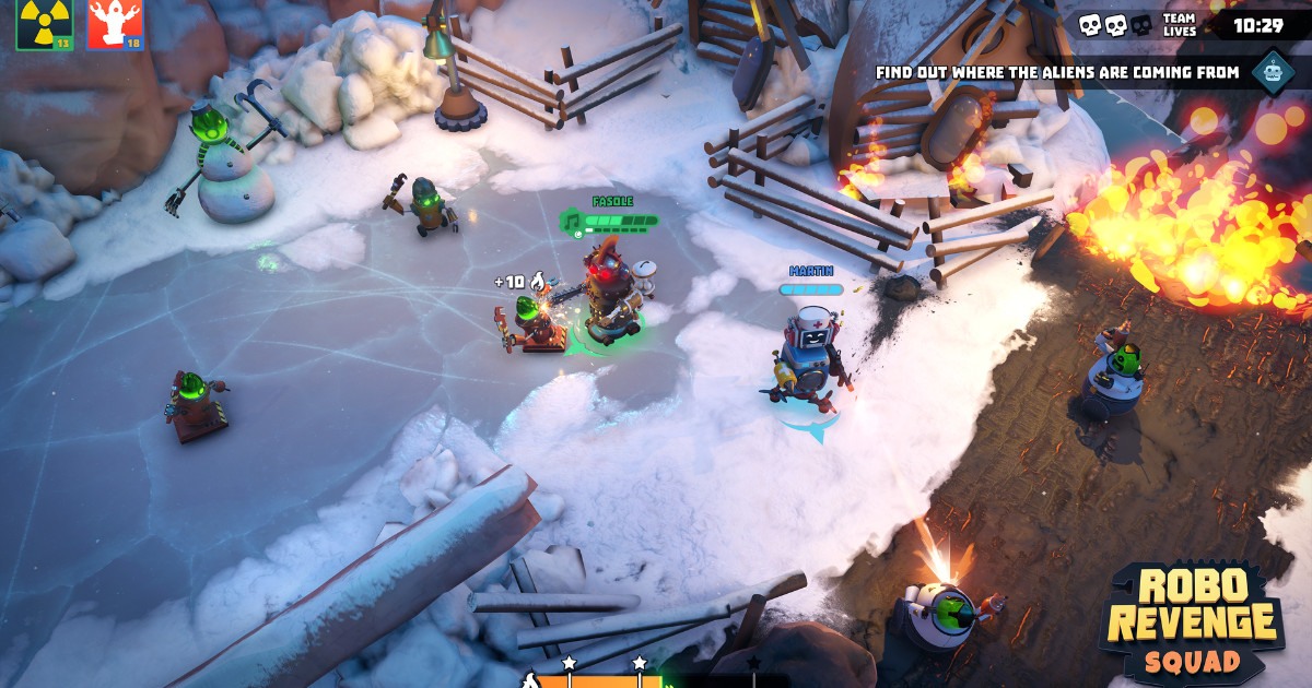 Robo Revenge Squad to gra kooperacyjna z gatunku twin-stick shooter dla 1-4 osób. Gracze tworzą drużynę robotów skonstruowanych ze sprzętów domowych. Zadaniem zespołu jest stawienie czoła atakującym Ziemię maszynom. Każdy robot gracza może być w pełni spersonalizowany za pomocą zróżnicowanego uzbrojenia oraz elementów dekoracyjnych.