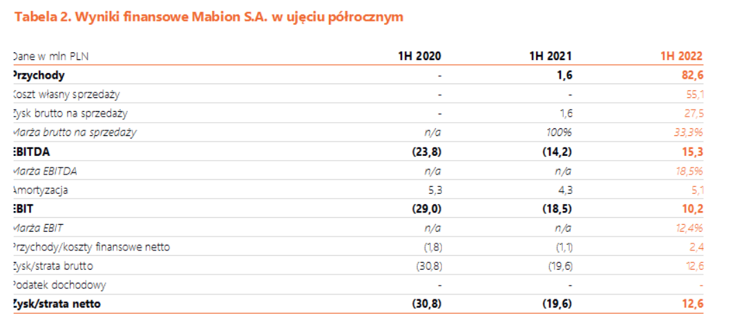 W 2Q 2022 Mabion wygenerował 6,6 mln PLN dodatnich przepływów operacyjnych, saldo gotówki na dzień 30.06.2022 wyniosło 22,3 mln PLN.