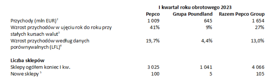 Pepco Group N.V. - komunikat nt. wybranych wyników operacyjnych za I kw. roku obrotowego 2023