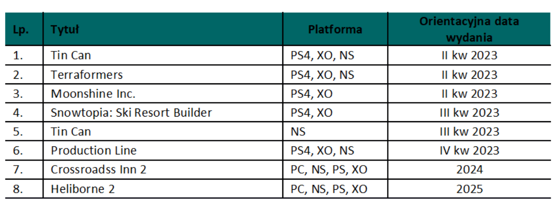 Spółka planuje także powiększanie zasięgu rynkowego dzięki współpracy z wydawcami i dystrybutorami. Dodatkowo, przyjęta strategia zakłada realizację projektów portingowych o wysokim potencjale sprzedażowym.