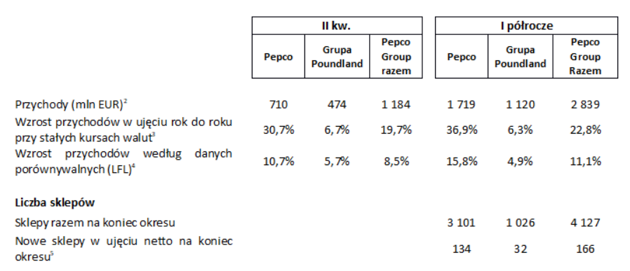 - Pepco: 15,8% wzrostu LFL w I półroczu; 10,7% wzrostu LFL w samym II kwartale