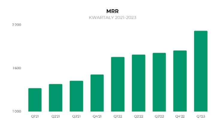 W pierwszych trzech miesiącach spółka wypracowała 2,1 mln zł powtarzalnych przychodów (MRR), tj. o ponad jedną czwartą więcej niż w tym samym okresie przed rokiem.
