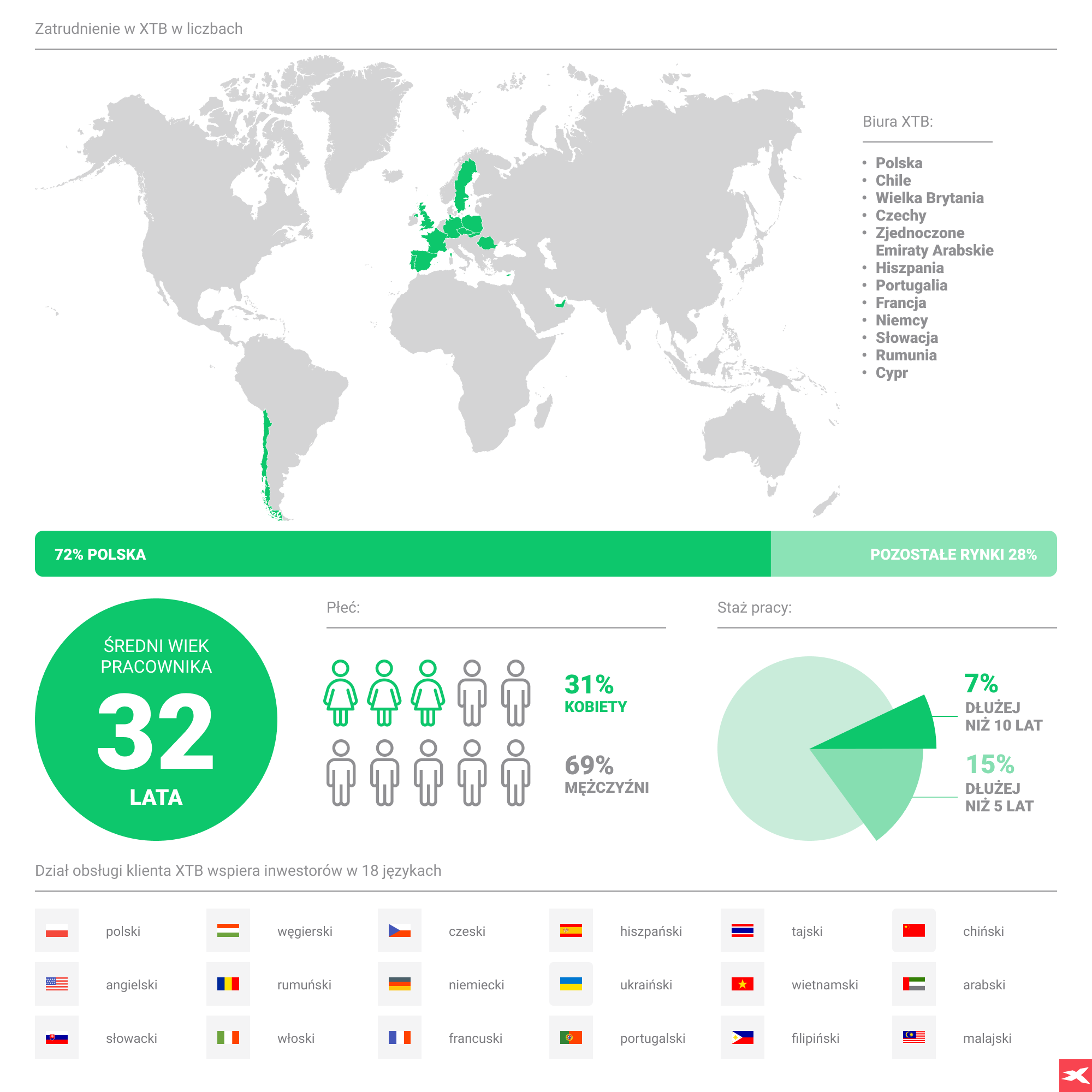 Grupa XTB jest międzynarodowym dostawcą produktów tradingowych i inwestycyjnych. Podmioty grupy są regulowane przez światowe organy nadzoru, w tym FCA, CySEC i KNF. XTB zapewnia inwestorom indywidualnym natychmiastowy dostęp do setek rynków na całym świecie. Od 2004 roku Grupa XTB rozwija swoją działalność na 13 głównych rynkach w Europie, Ameryce Łacińskiej i Azji, zdobywając ponad 762.000 klientów. XTB to firma technologiczna oparta na zaufaniu, technologii i wsparciu. Poprzez X-Open Hub, XTB dostarcza wiodące technologie dla instytucji finansowych z całego świata.
