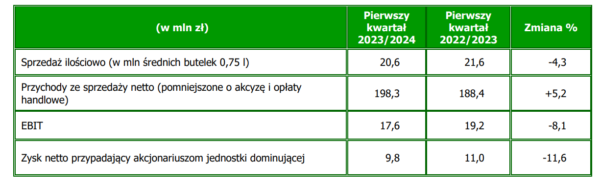 W pierwszym kwartale 2023/2024 roku przychody ze sprzedaży wzrosły o 5,2%. Wzrost ten był efektem wprowadzonych w poprzednich kwartałach podwyżek cen sprzedaży. Sprzedaż w ujęciu ilościowym spadła o 4,3%, na co wpłynęły pogorszone nastroje konsumenckie spowodowane inflacją i spadkiem siły nabywczej.