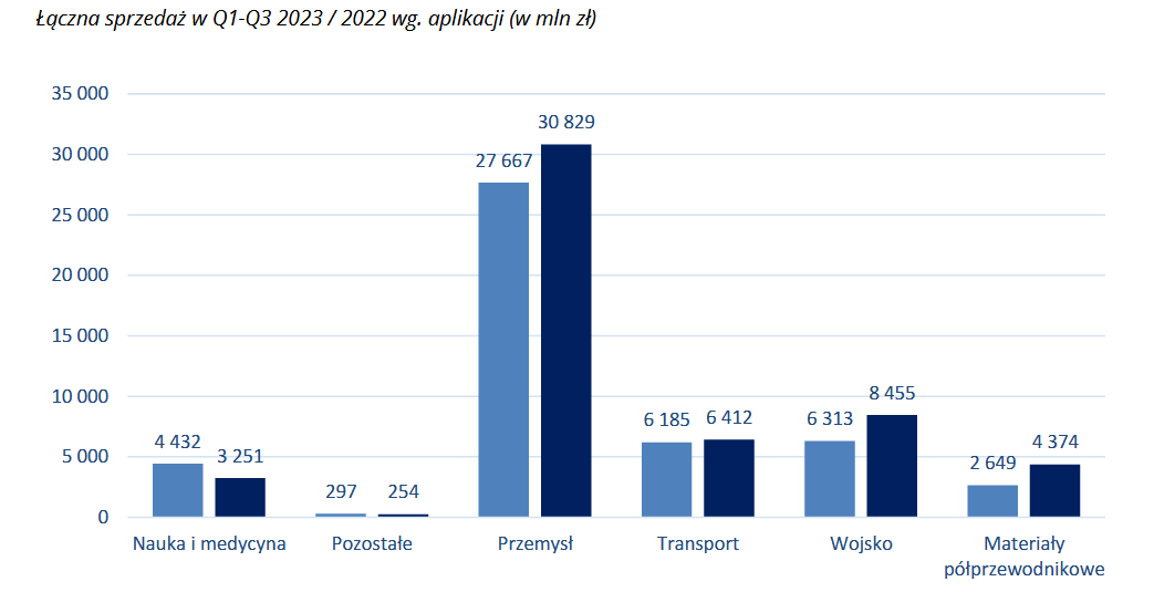 W III kwartałach 2023 VIGO zanotowało wzrosty sprzedaży rok do roku w segmentach przemysłowym, wojskowym, transportowym oraz materiałów półprzewodnikowych.