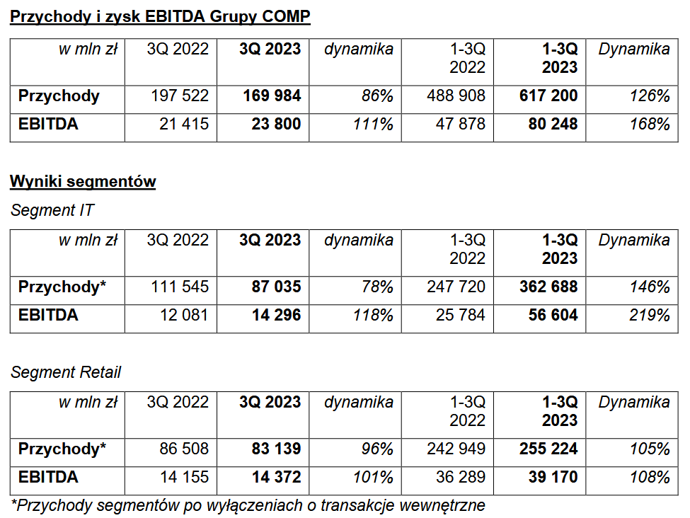 Grupa COMP podsumowuje wyniki za 3Q 2023