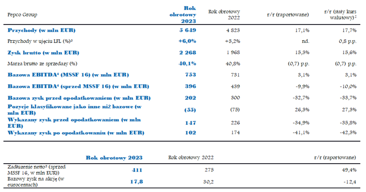 – Pomimo trudnych warunków rynkowych, odnotowaliśmy kolejny rok strategicznego postępu i rekordowej sprzedaży w wysokości 5 649 mln EUR w porównaniu z wyśrubowanymi już wynikami wypracowanymi rok wcześniej. Otworzyliśmy rekordową liczbę 668 nowych sklepów netto, głównie pod szyldem Pepco, w Europie Środkowo-Wschodniej, ale także w Europie Zachodniej, przy czym liczba nowych sklepów w tym regionie zbliżyła się do połowy wszystkich uruchomionych – przy bardzo optymistycznych postępach w Europie Zachodniej, w szczególności w krajach takich jak Hiszpania i Włochy.
