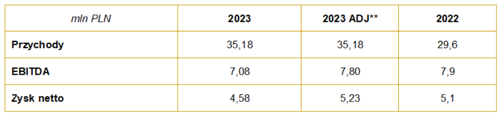 Dla celów informacyjnych wybrane dane finansowe sporządzone zostały przy założeniu konsolidacji całości przychodów i kosztów spółek konsolidowanych od dnia 1 stycznia 2023 roku.