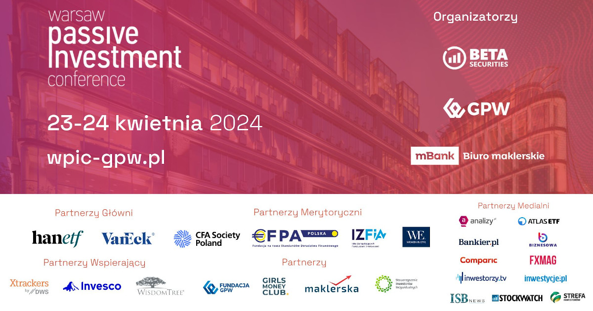 23 i 24 kwietnia 2024 r. odbędzie się piąta edycja „Warsaw Passive Investment Conference” (WPIC) – konferencji dla każdego, kto interesuje się wykorzystaniem ETF-ów w swoich strategiach inwestycyjnych.